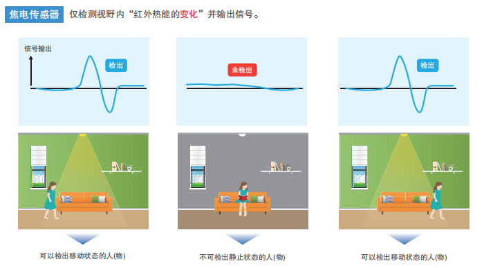 焦電傳感器和MEMS非接觸溫度傳感器都是接收紅外線微弱的熱能并輸出信號(hào)的傳感器。焦電傳感器無法檢測靜止?fàn)顟B(tài)的人(物),而MEMS非接觸溫度傳感器可以檢測靜止?fàn)顟B(tài)的人(物)。