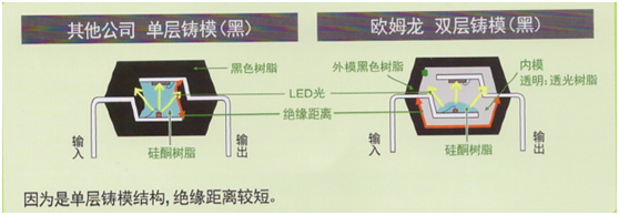 歐姆龍MOS FET繼電器高絕緣型雖然采用了黑色樹(shù)脂,但由于是雙層鑄模構(gòu)造,因此可確保較長(zhǎng)的絕緣距離,實(shí)現(xiàn)了高絕緣性。DIP、SOP系列產(chǎn)品新增黑色封裝,DIP:支持AC5000V;SOP:支持AC3750V