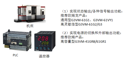 (3)自動化設備產品應用:比較機床、PLC、溫控器、計時器等,繼電器在產品上起的作用主要為產品狀態指示、控制照明電源切換等。