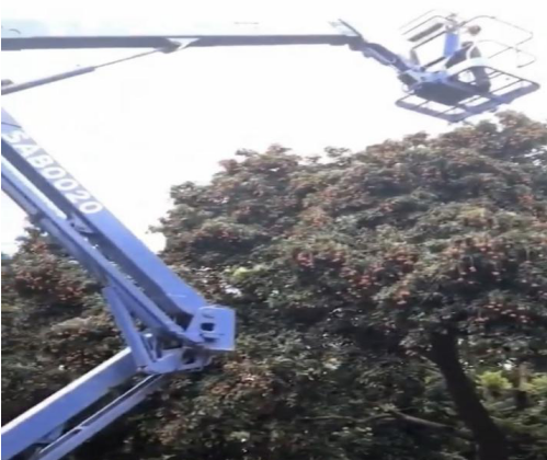 “一騎紅塵妃子笑,無人知是荔枝來”,又到吃荔枝的季節了。想想兒時,最快樂的事情莫過于爬到荔枝樹上,坐在樹叉上,享受著被滿樹荔枝圍繞的感覺.然后隨手一串荔枝,邊去著荔枝皮,邊口吐荔枝核.那感覺爽歪歪。驀然發現,竟然有人用高空作業車來摘荔枝,確為奢侈但又不失為一種生活趣。在既能輕松安全摘荔枝的同時,又能享受高空攀爬的樂趣。