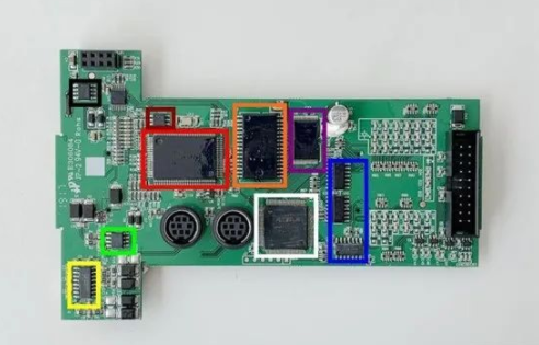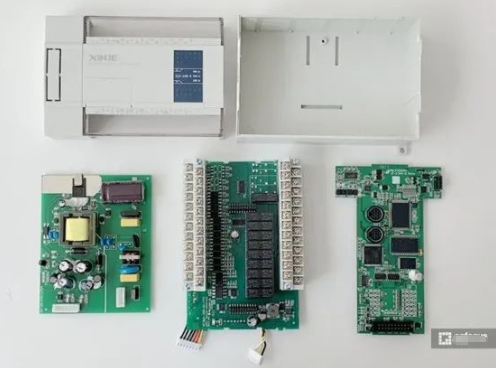 PLC 在 PCB 設(shè)計上分為了 3 個板子,從左至右分別為電源板、IO 口板以及主控板。