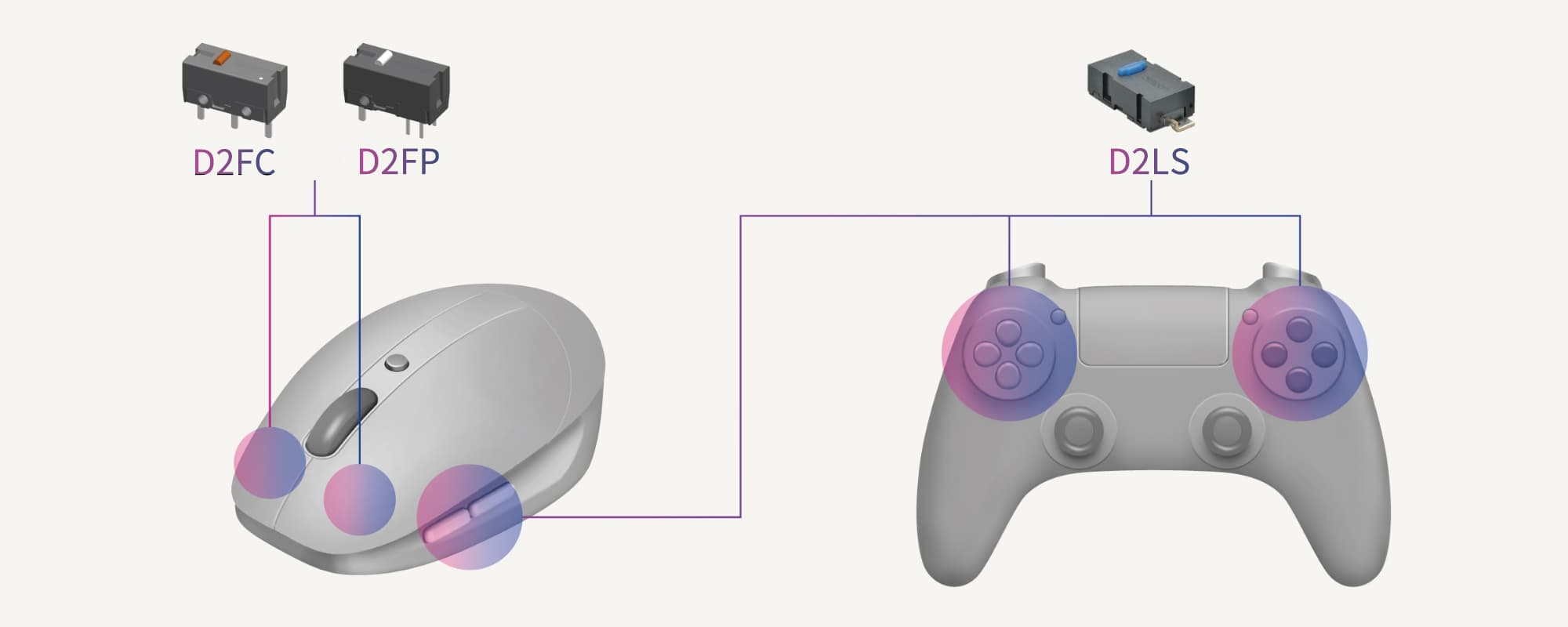 微動開關是具有微小接點間隔和速動機構(gòu),用規(guī)定的行程和力度進行開關動作的一種微小型開關。在最開始,歐姆龍并沒有生產(chǎn)鼠標專用微動開關的想法,而契機來源于一家鼠標廠商,他們非常喜歡歐姆龍微動開關D2F系列的操作感和輕觸感,作為日常使用頻率極高的的鼠標,具有“后行程”功能的D2F型可從推入位置繼續(xù)推入,對手指產(chǎn)生的負擔微小。于是便于手指操作且尺寸較小的D2F系列開關正巧成為了一款可滿足鼠標開關需求的商品。