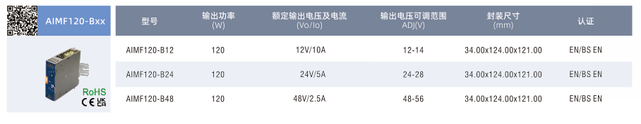 開關電源AIMF120-BxX, ?輸入電壓范圍:85-277VAC/120-390VDC ?效率最高可達 94.5% ?工作溫度范圍:-40℃to +85℃,60℃可滿載 ?150%峰值功率 ?主動式 PFC,PF≥0.98 ?DCOK功能 ?雙面三防漆、防鹽霧、防爆 ?滿足 5000m 海拔應用 ?過電壓等級川(設計參考 EN62477,2000m) ?輸出短路、過流、過壓、過溫保護 ?符合 ATEX、IECEx增安型防爆認證 ?符合ANSI/ISA71.04-2013G3等級防腐測試 ?符合IEC/