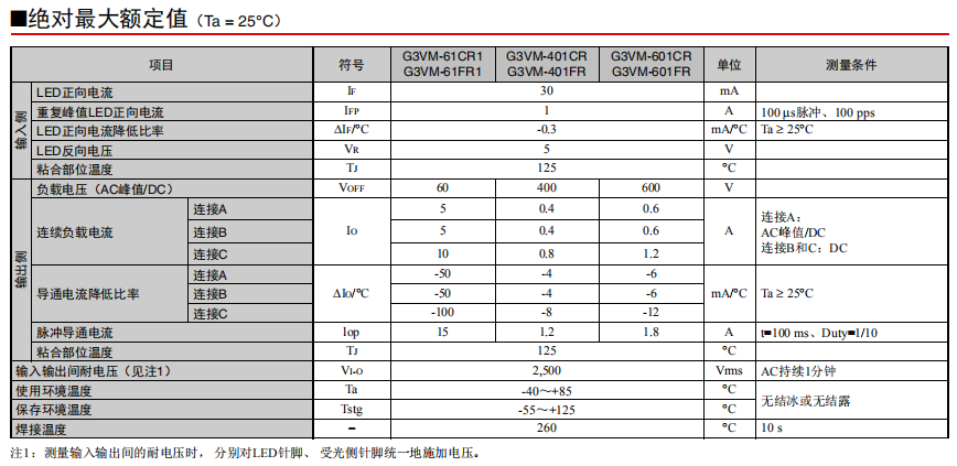 G3VM-31/61/101WR 光敏半導體MOS FET