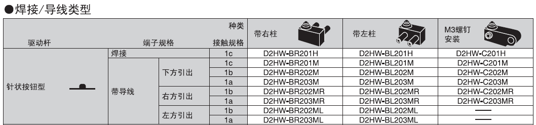 D2HW-C203ML歐姆龍微動開關(guān)