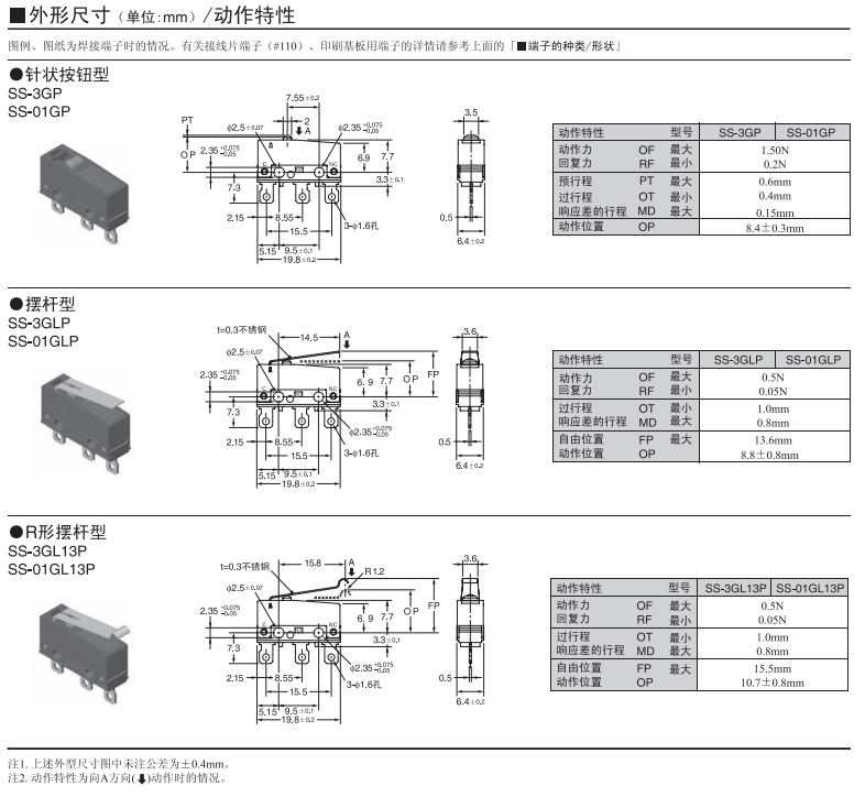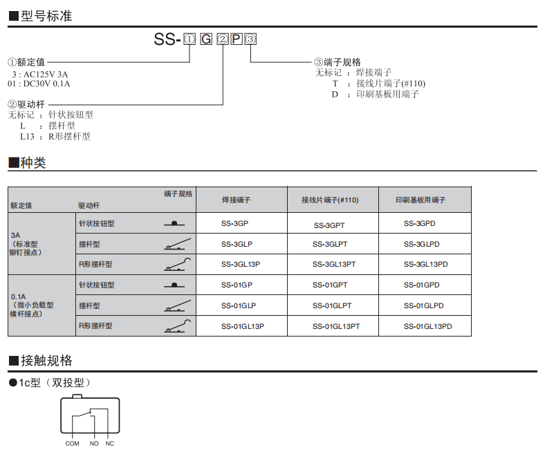 可以與SS系列安裝互換、構造簡單、追求使用方便性 采購助焊劑不會向上漫延的整體成形端子結構 活動片為簡潔的單片彈簧結構 符合北美、歐州的安全標準