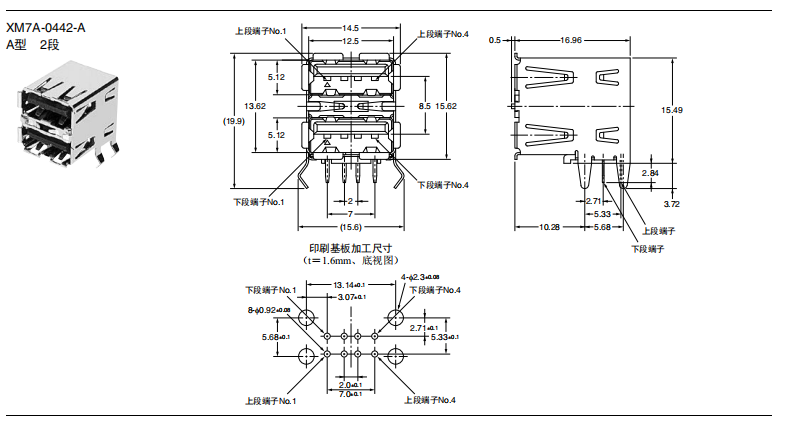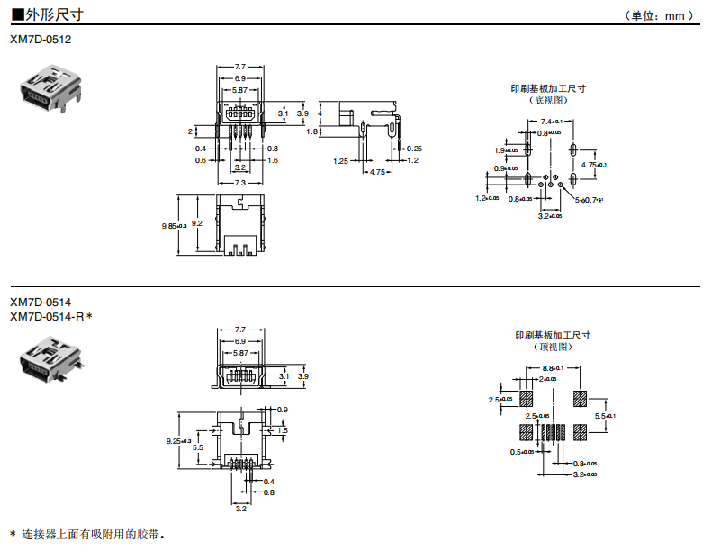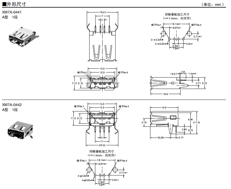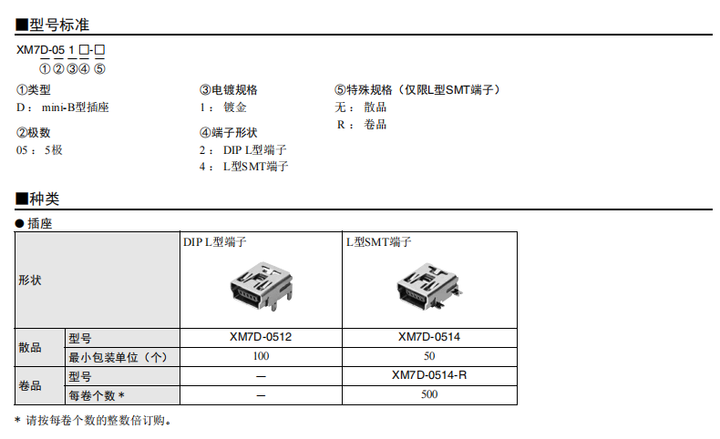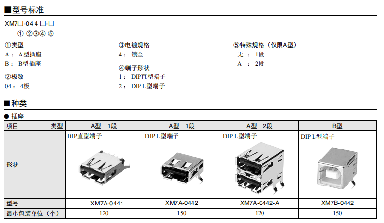 符合USB標(biāo)準(zhǔn)的 小型接口連接器 符合USB2.0標(biāo)準(zhǔn)。 插拔次數(shù)可達(dá)1,500次。 A型插座封裝在計(jì)算機(jī)主體、USB集線器等上,B型插座封裝在調(diào)制解調(diào)器、掃描儀、鼠標(biāo)等計(jì)算機(jī)外圍設(shè)備上。 有無(wú)認(rèn)證規(guī)格,請(qǐng)參見(jiàn)“規(guī)格認(rèn)證”。