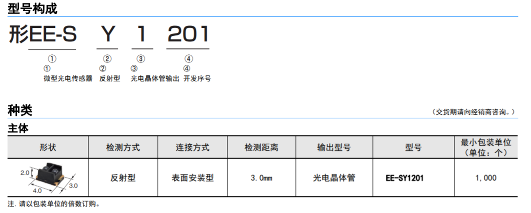 EE-SY1201 微型光電歐姆龍傳感器(反射型)