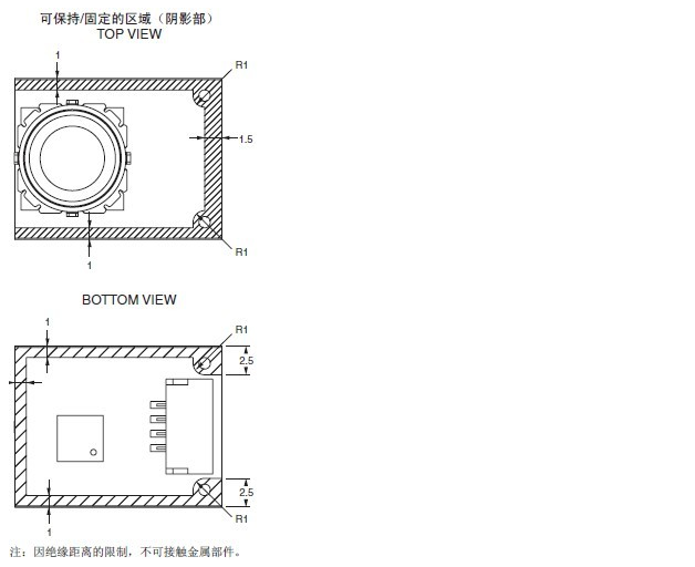· 不可使用螺釘進行安裝。否則會導致基板的保護層剝離。安裝時應注意避免保護層剝離。